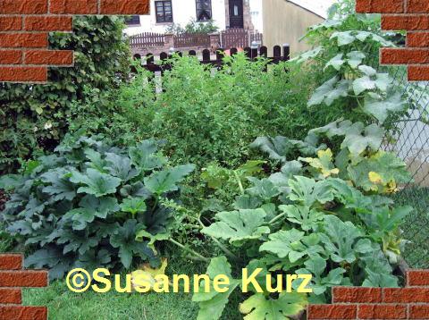 02.09.06 ZucchiniernteLetzten Samstag hatte ich meine Zucchini komplett abgeerntet, dabei habe ich lediglich 3 kleine weiße erbeutet. In dieser verregneten Woche bin ich kaum raus in den Garten und so hat es mich gestern fast umgehauen, als ich plötzlich über 3 KG Zucchini ernten konnte. Das größte Ufo hat einen Durchmesser von 22 cm, die Courcourzelle - Keule rechts im Bild ist fast 30 cm lang und 1 KG schwer.Neben den Pflanzen, die auf dem kleine Hügelbeet stehen, habe ich noch 2 Zucchini im Schattenbeet stehen. Die weiße hat dort noch keine Frucht angesetzt und produziert lediglich männliche Blüten. Die Courcourzelle bringt schon mal die ein oder andere kleine Frucht hervor. Allerdings mußte ich dort einen leichten Befall der Blätter mit Mehltau feststellen. |
