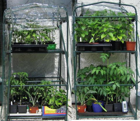 09.05.07 Neuer Blick ins FoliengewächshausBeim heutigen Blick in mein Foliengewächshäuschen habe ich festgestellt, dass nicht nur die Carnica, aber insbesondere die, in den letzten Tagen enorm zugelegt hat. Wenn man die Bilder von heute (rechts) mit dem von vor 9 (!) Tagen (links) vergleicht, kann man erkennen, dass die Carnica bereits an dem obersten Regalgitter anstößt