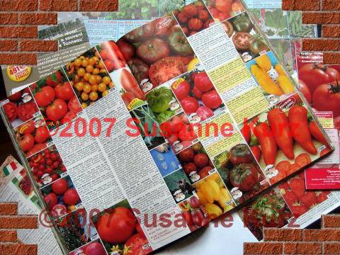 08.11.07 Bilderbuch für GemüsegärtnerMeine aktuelle Lieblingsbeschäftigung: den 330 Seiten starken Katalog von Baumaux zu wälzen, davon ca. die Hälfte Gemüse, Kräuter und Obst. Darunter sind Spezialitäten, von denen ich zwar schon gelesen habe, aber von denen ich z.B. nicht wüßte, wo man sie beschaffen könnte, wie z.B. Stachys, Taro oder auch Erdbeeren mit panaschierten Blättern.