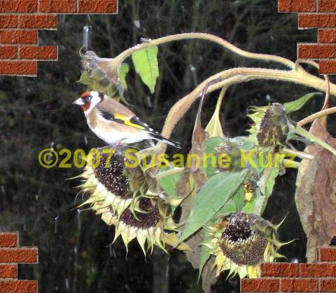 01.12.07 Stieglitz BesuchEin neues Jahr, ein neues Stieglitzbild. Bereits im letzten Jahr hat sich eine Bande Stieglitze über meine Sonnenblumen hergemacht. Danach war das ganze Jahr über nichts mehr von ihnen zu sehen.